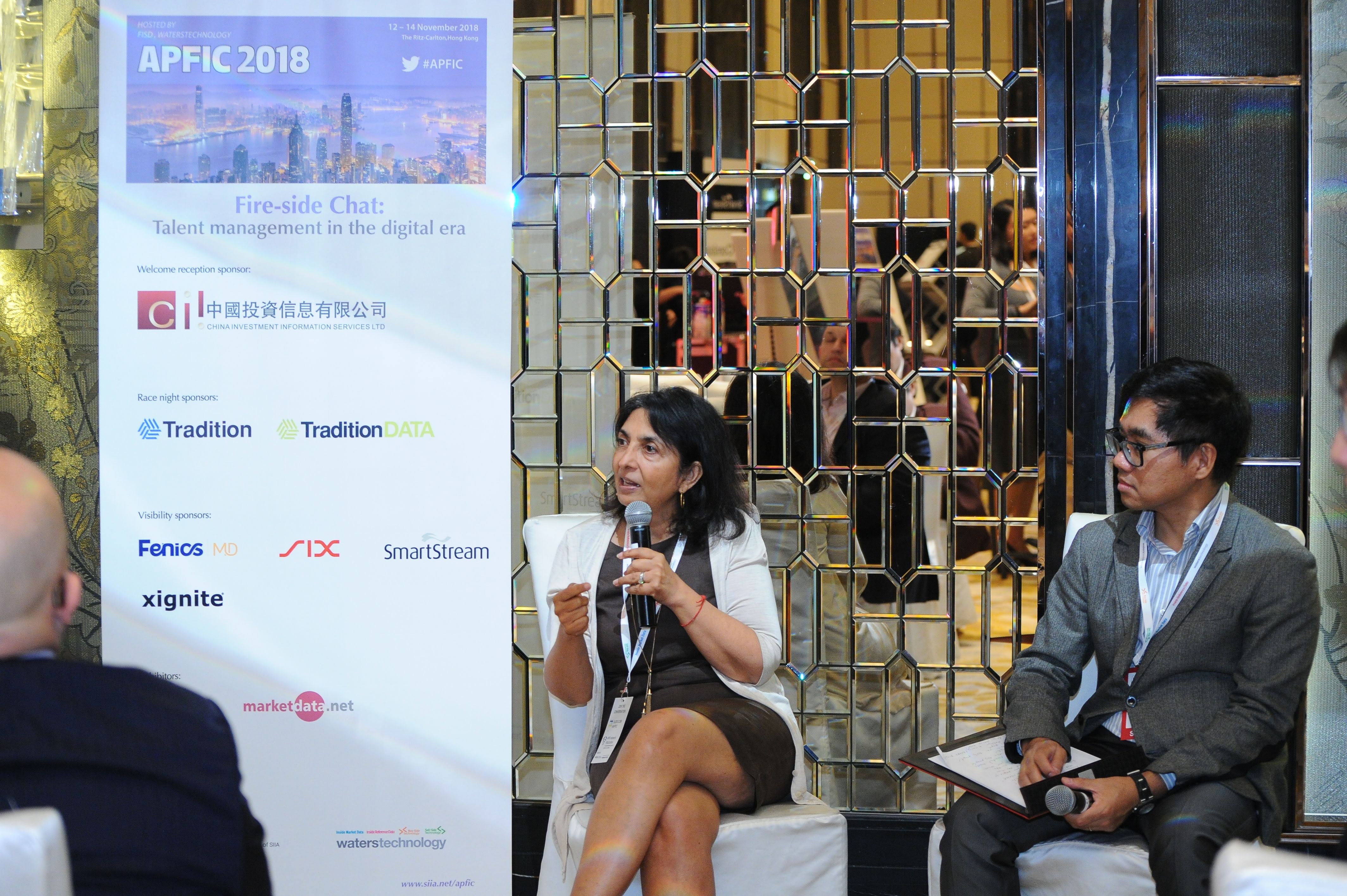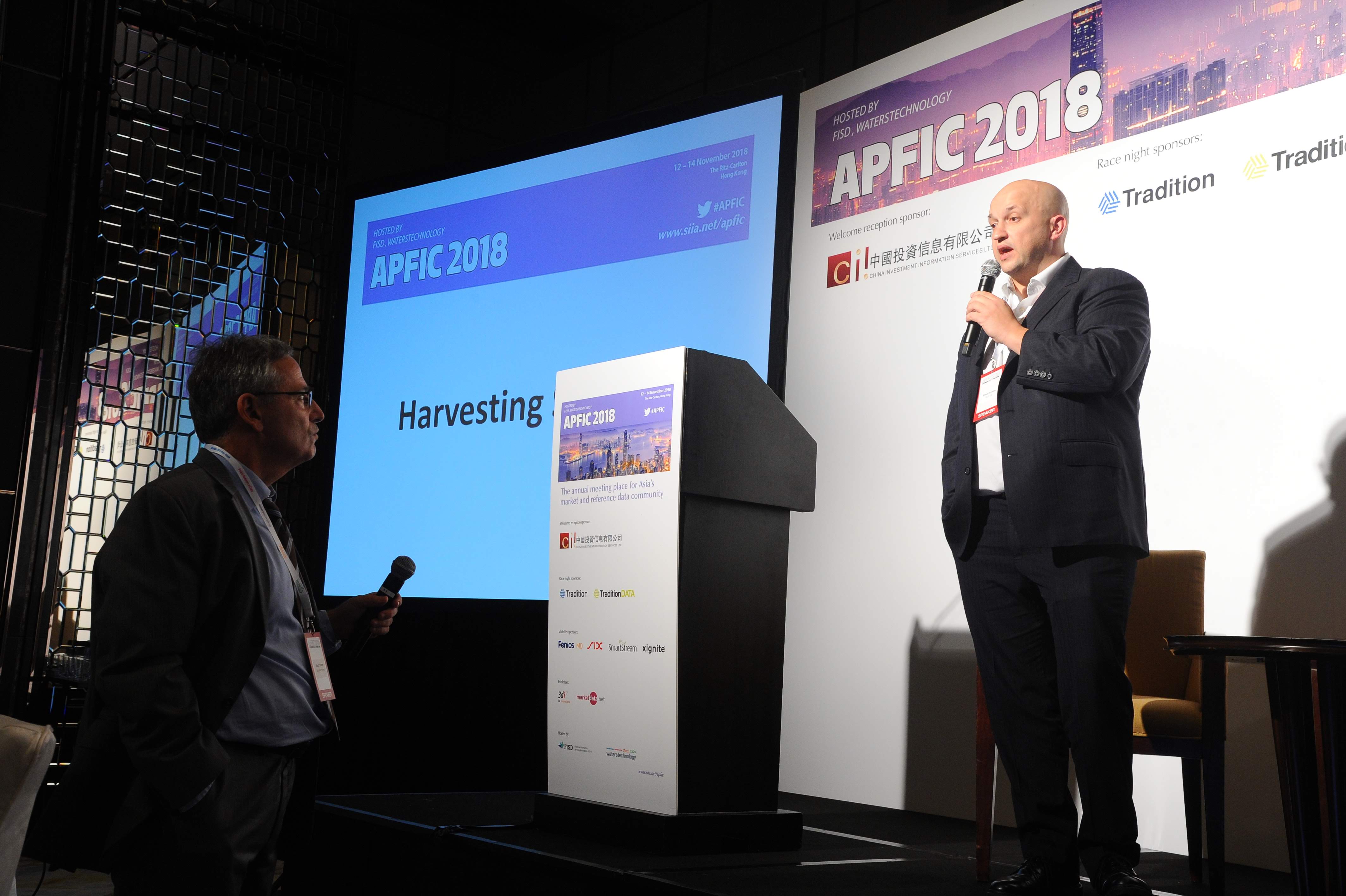 今年的亚太区金融信息会议(APFIC)于11月12-14日在香港举行,会议由金融信息服务协会(FISD)主办。中投信再次成为本次会议的欢迎酒会赞助商。会议的参会人员主要是海外的信息商、投资银行以及交易所。